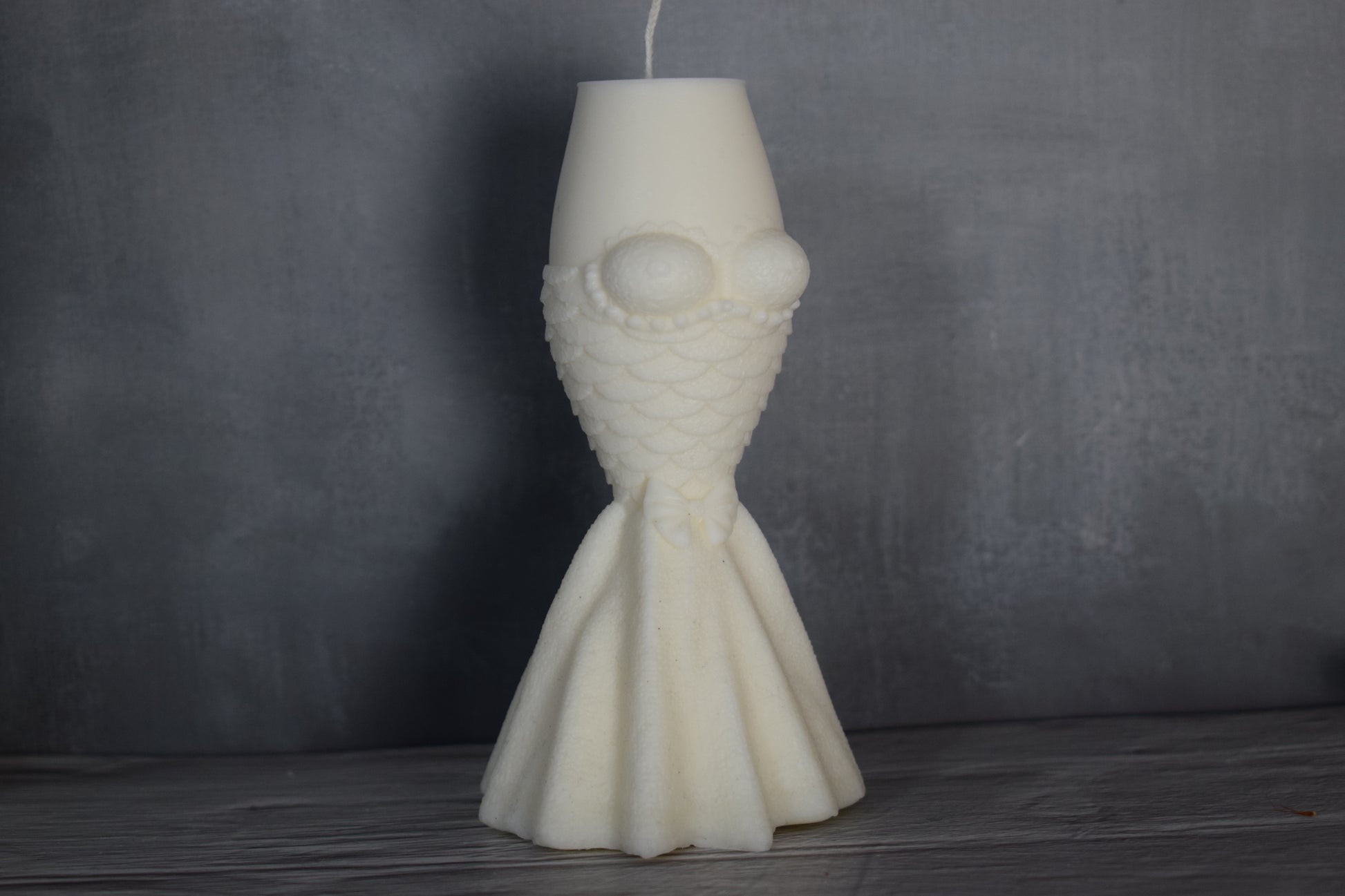 Esta vela decorativa , inspirada en la silueta femenina , celebra la elegancia , la fuerza y la delicadeza del cuerpo en equilibrio. Su diseño evoca un vestido que fluye suavemente , con detalles que realzan la forma y aportan movimiento , convirtiéndola en una pieza artística que trasciende la funcional.